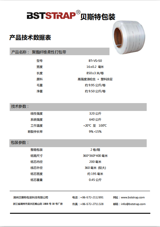 • 16mm 聚酯纤维打包带 BT-VS-50